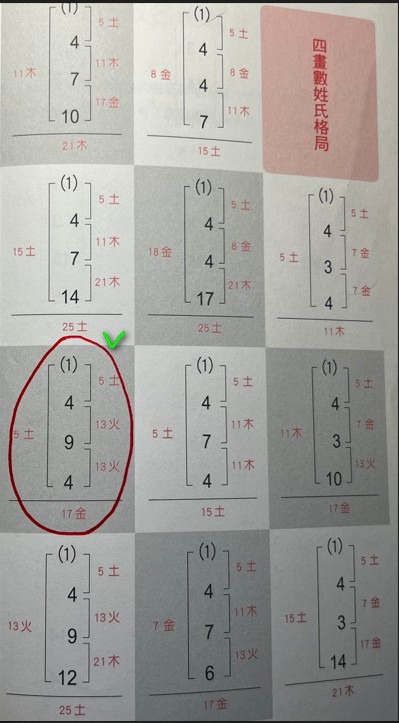 讀者們可去一般書局隨便找本姓名學的書籍翻開內頁找到有格局的那幾頁去做比對,你會發現不同名的姓名學,不同的老師,裡面建議你應用命名,改名的格局都是大同小異甚至都幾乎一模一樣!!!全都是四吉數的熊崎式格局!!!
