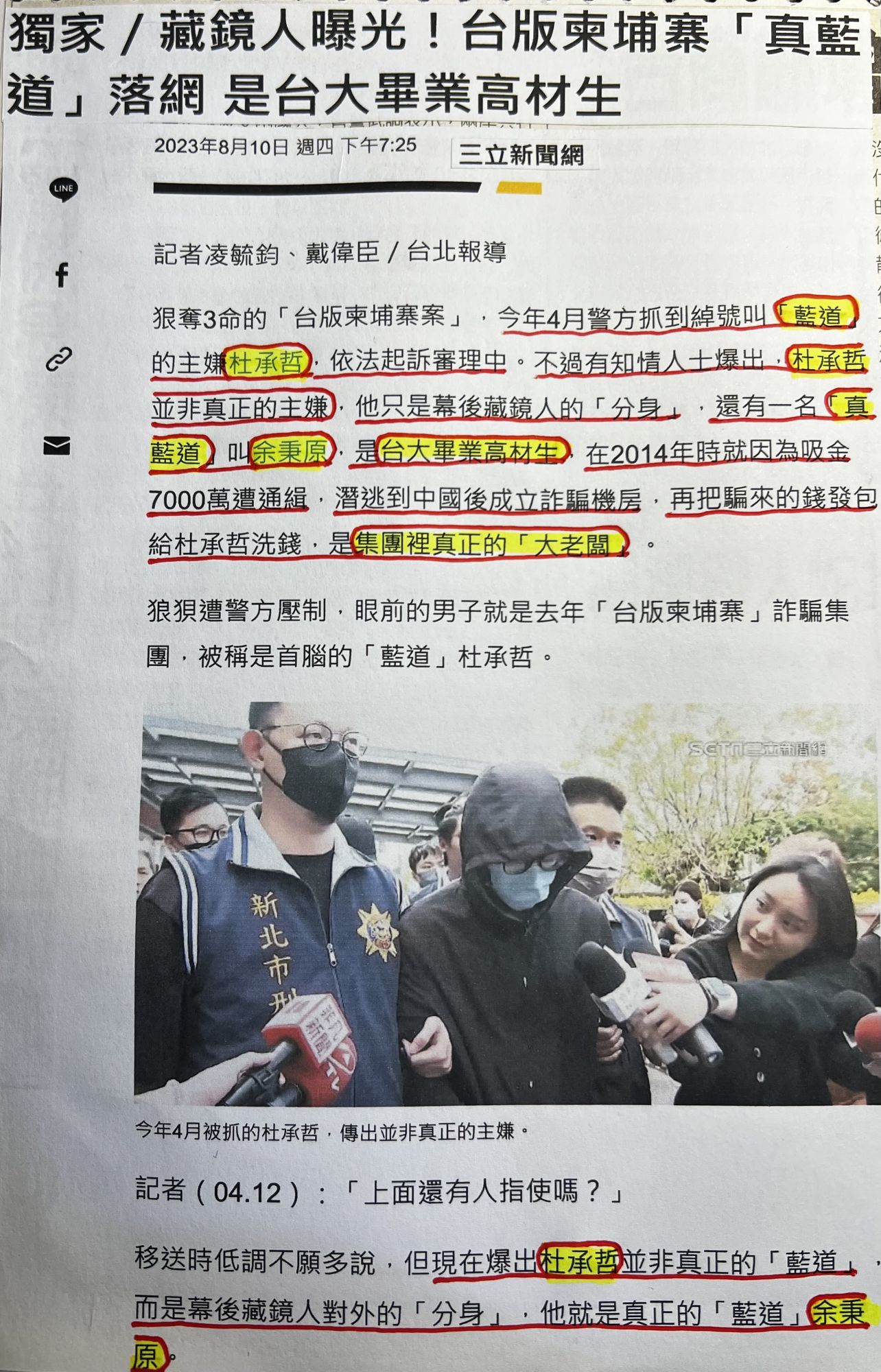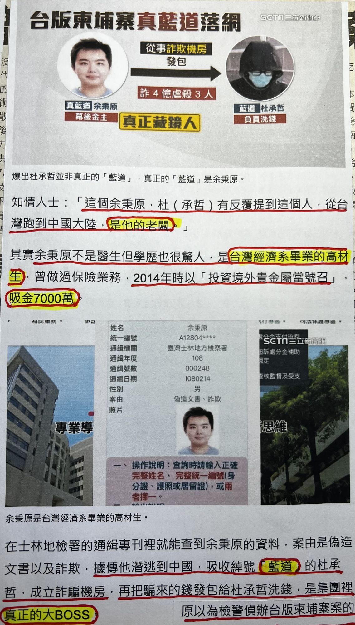 讀者們有看清楚這個轟動台灣引發眾所關注的台版柬埔寨求職詐騙案造成四死的主嫌真藍道余秉原與假藍道杜承哲的姓名格局嗎???