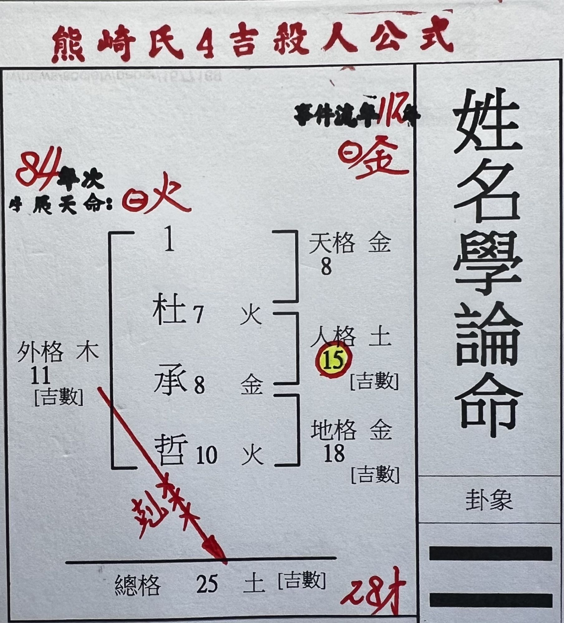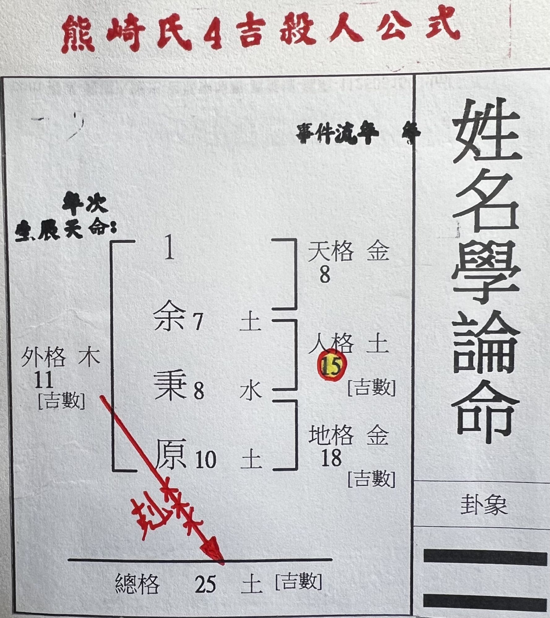 在此也奉勸有幸讀到此篇的姓名學老師若你還在應用四吉數的熊崎式公式為他人命名改名的話,趕快停手吧!!!
