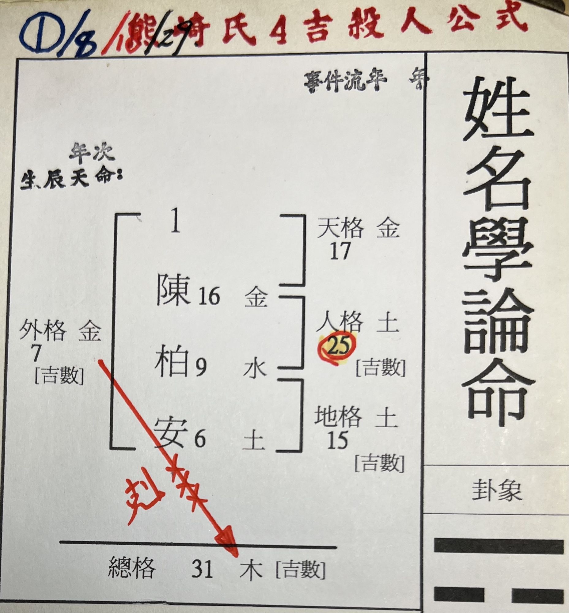 65年次後,姓名排列出現四吉數這個名字90%一定有問題