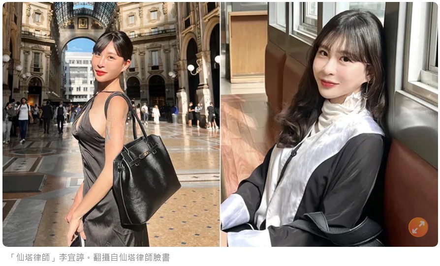 李宜諪為北市「言亭」國際法律事務所的主持律師,自稱是刺青律師,臉蛋甜美的她,目前臉書有9478人追蹤,2024年與顧問律師共同經營自媒體事業,常以「仙塔律師」為名在臉書、IG分享律師工作,或以輕鬆的口語和俏皮的表現方式科普一些法律觀念。她曾拍攝影片教導民眾若是被詐欺集團騙錢後,如何用2招拿回錢,結果她卻因涉幫詐團主嫌洗錢遭檢警搜索拘提。https://news.nextapple.com/local/20250702/590A46BA34A17817D30CF0A90F76D345
