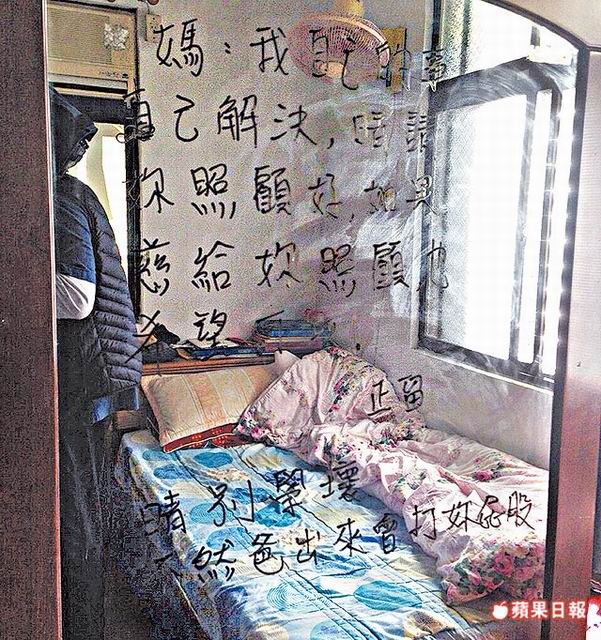 張嫌昨晨出車前,在房間鏡子上寫著: