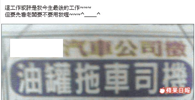 檢警調查發現,張嫌去年2月看報紙應徵油罐拖車司機,在臉書寫: